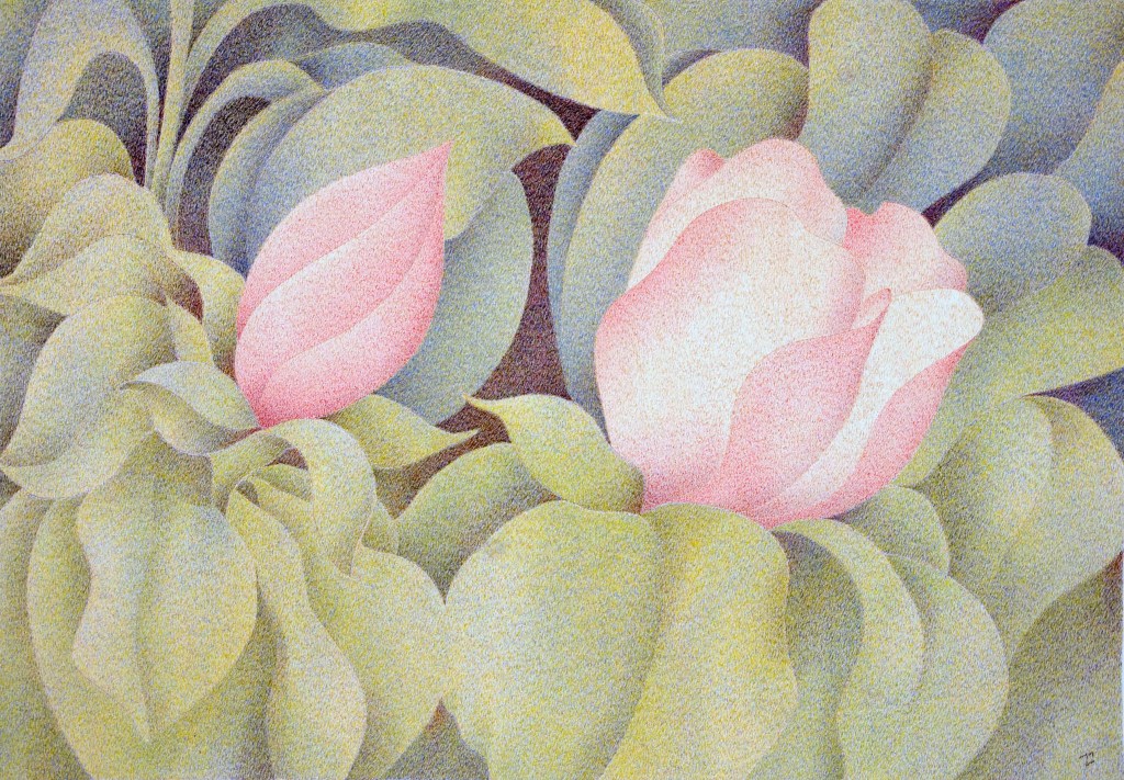 Depuis 1965, Marie José Malargé reste fidèle à sa technique originale : peinture à la plume sur papier.